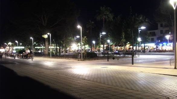 Plaza con riego auto-depurado mediante filtros naturales